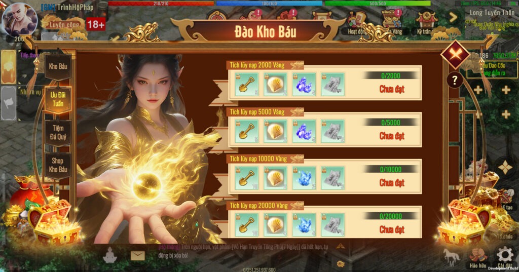 | Tích nạp 100000 Vàng | Xẻng Vàng – Khóa | 20 | 100.000 |