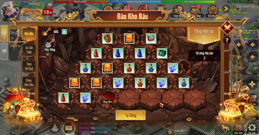 Tầng càng sâu, phần thưởng càng lớn (hệ số K tăng), đồng thời chi phí Xẻng Vàng mỗi lượt đào cũng tăng tương ứng: